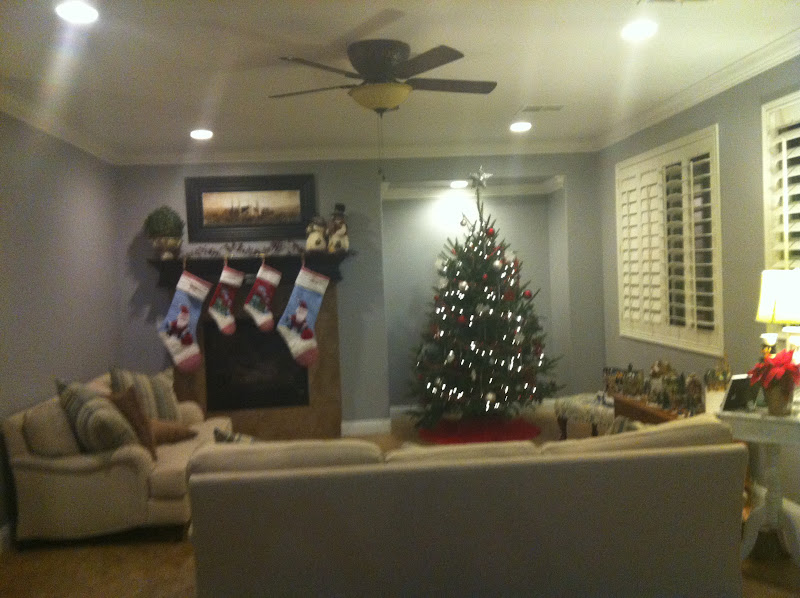 I usually get a picture decorating the tree, but this year I failed at that. We have a little tree upstairs, and I didn't get a picture decorating that one either! But I have these (not so great) pictures of it decorated: