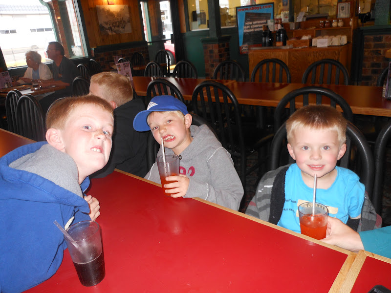 Here is a picture of some our fabulous boys at our favorite restaurant on of the mornings. In fact, they were so fabulous, that the owner brought us over two pies and told us how impressed she was with how well behaved they are. I'm glad we have great boys, but we were mostly glad that day that it got us yummy pie :).